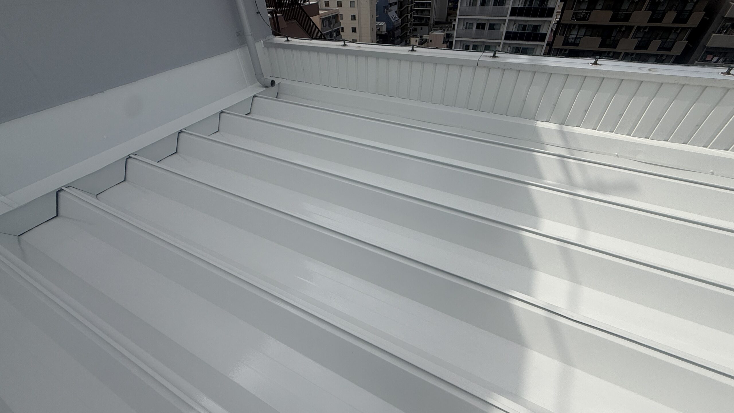 上塗り材がプレミアム無機ルーフ遮熱 スノーホワイトを使用しました!