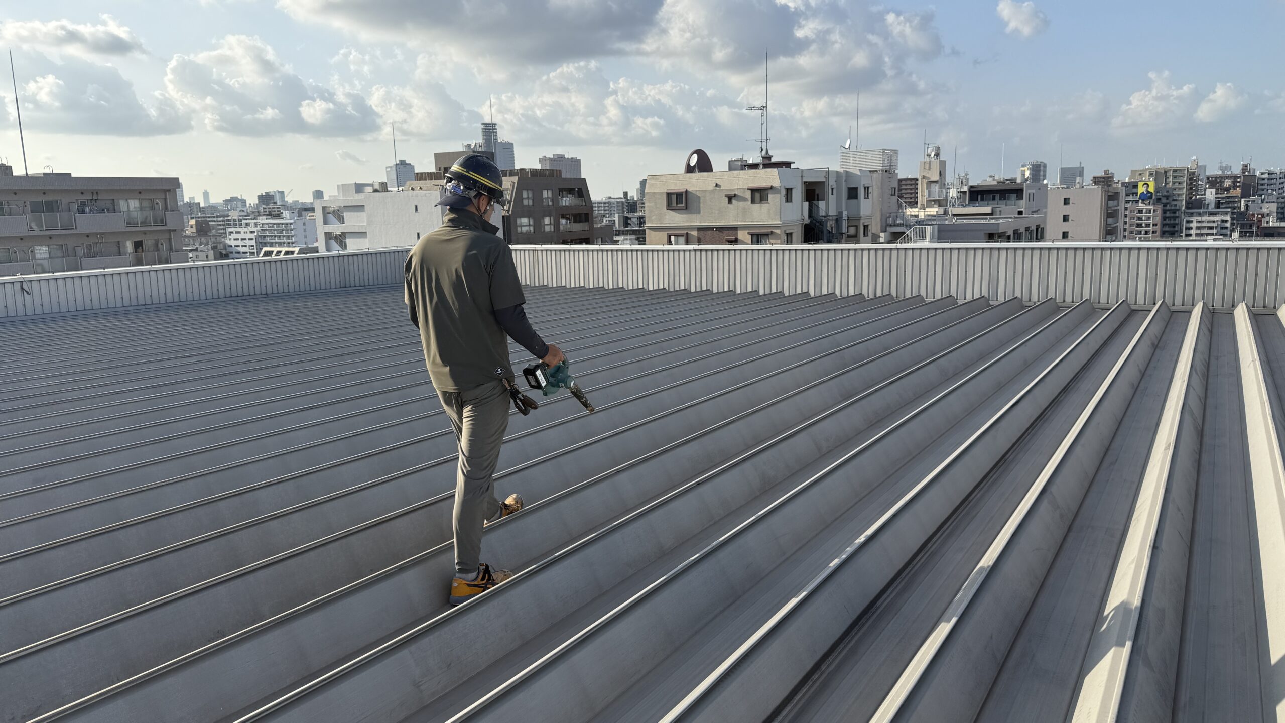 本日は菊川にあるビルの屋上の折半屋根の