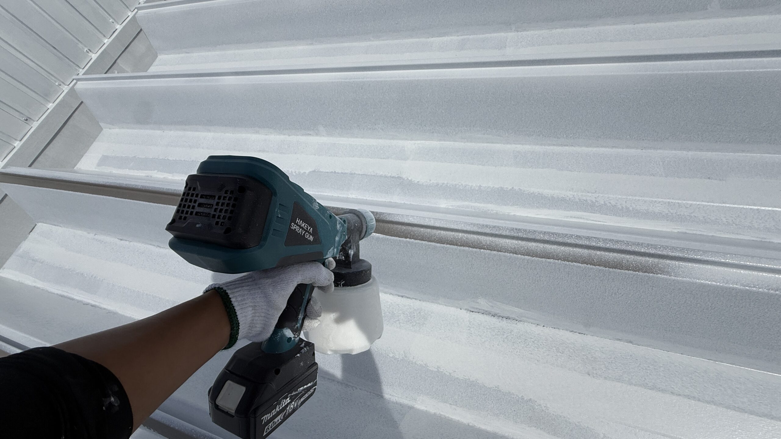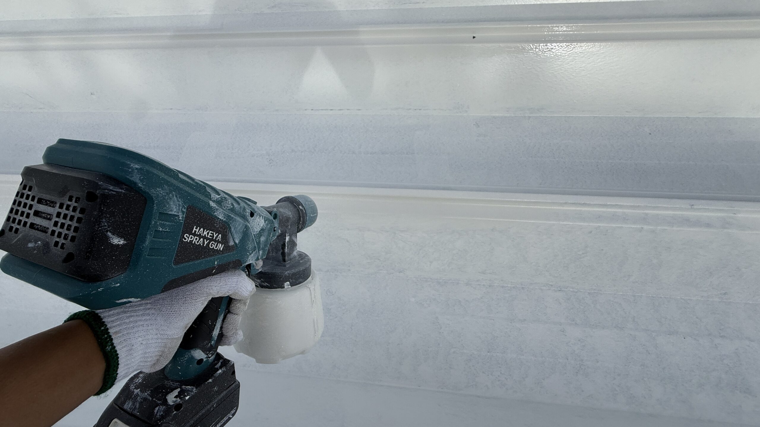 細かいところは吹き付け、後はローラーで塗りました